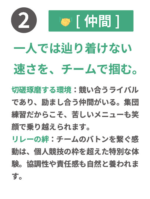 【仲間と競い、記録に挑む「実践の場」3つのポイント】