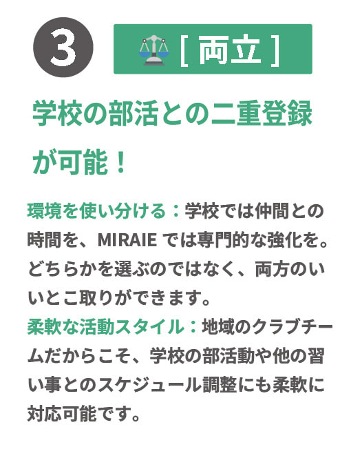 塾とクラブを併用することで、より効率よく成長できます