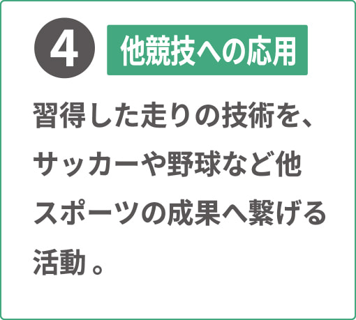 4.陸上実業団選手やスポーツ系大学の学生などスポーツや陸上に精通した指導者からの練習を受けられる